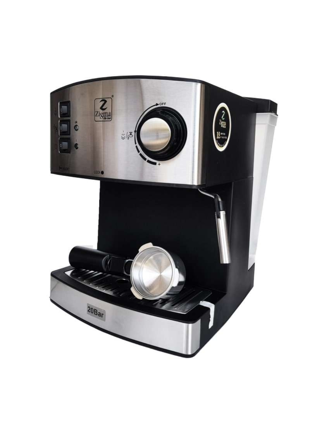 - 🔸 قدرت بخار بالا (20 بار فشار): یکی از ویژگیهای مهم برای تهیه اسپرسوی واقعی، فشار بخار کافیه. اسپرسوساز زیگما با فشار 20 بار، عصارهگیری قویای داره و قهوهای با کرمای غلیظ و عطر دلانگیز براتون تهیه میکنه.